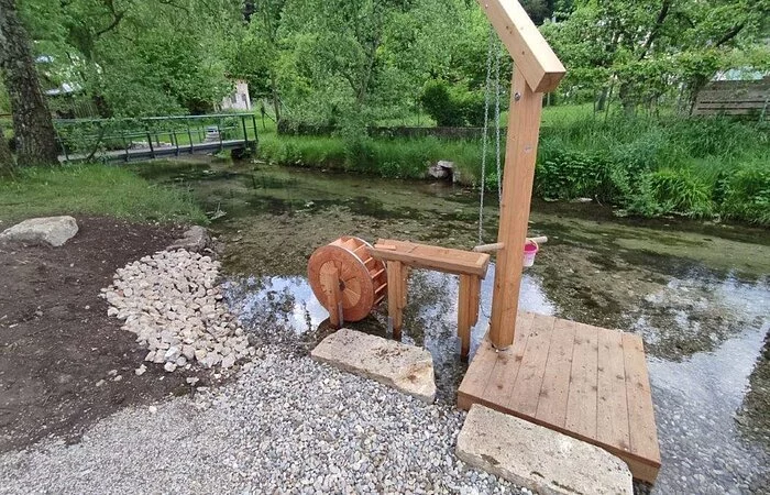 Zurück auf der regulären Strecke folgen wir dem Bierweg bis kurz vor Schweinkofen und wandern in der Schweinkofener Schlucht nach Mühlbach. Dort überqueren wir den Dorfplatz und gehen an der Kirche vorbei zum Mühlbachquelltopf. Anschließend gehen wir nach links und auf der Sommerleite zurück nach Dietfurt.