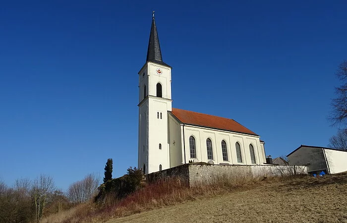 Am anderen Ortsende von Kirchanhausen folgen wir links einem Schotterweg, der am Waldrand entlang wieder zum Kratzmühlsee zurückführt.