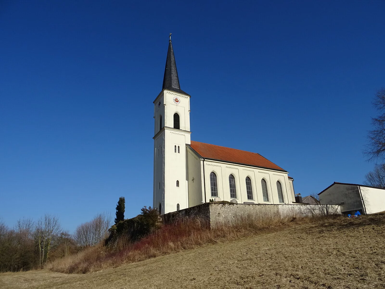 Hier überqueren wir die Staatsstraße, gehen ein kurzes Stück Richtung Kirchanhausen und wenden uns sofort links auf einen Feldweg, der zum Wald führt. Von dort aus erreichen wir über einen Hohlweg die Anhöhe und steigen wieder nach Kirchanhausen ab.