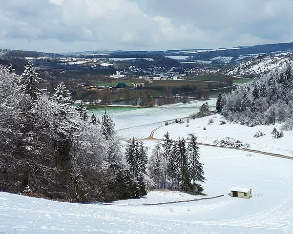 Sobald die Schneedecke dick genug ist, werden im Naturpark Altmühltal die Loipen gespurt – beim Langlaufen erlebt man die faszinierende Winterlandschaft und ihre herrliche Ruhe ganz nah. Und mancherorts finden Snowboarder und Skifahrer sogar Skilifte!